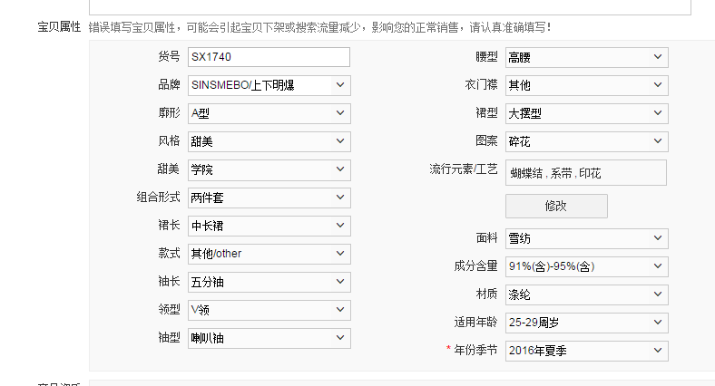 宝贝属性应该尽量填满。为何要这样呢?因为在以后我们做直通车推广的时候,任何关键词,属性词和文案都是能增加我们宝贝的相关性的。另外,属性一定要仔细准确,任何不准确的属性在商家恶意竞争中,他会去恶意投诉你导致你宝贝的下架。